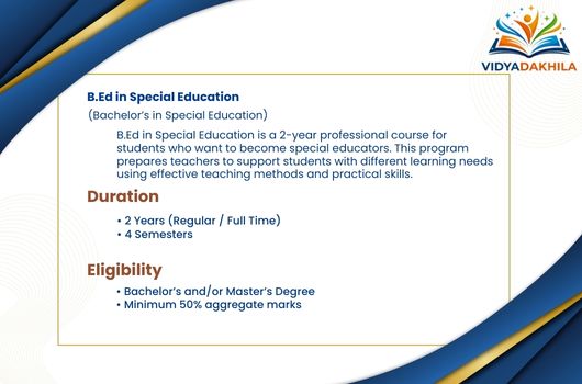 A 2-year professional course designed to prepare specialized teachers for students with diverse learning needs. The course includes theory, teaching practice, and practical exposure for inclusive education systems.